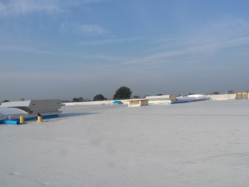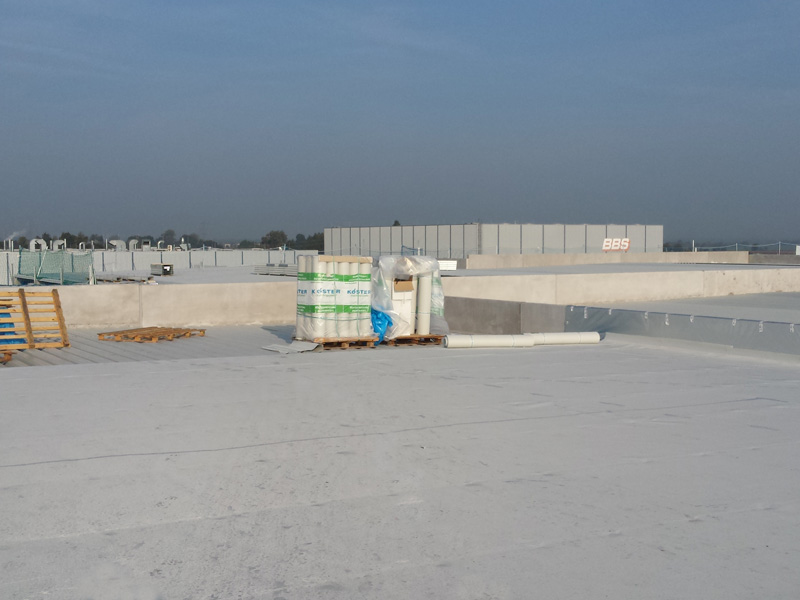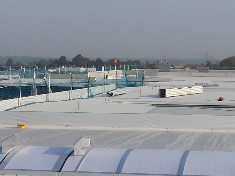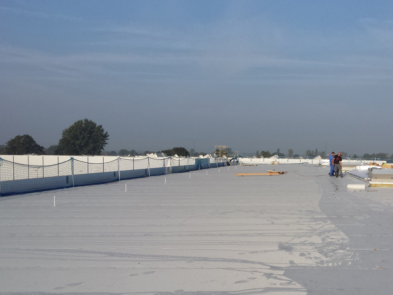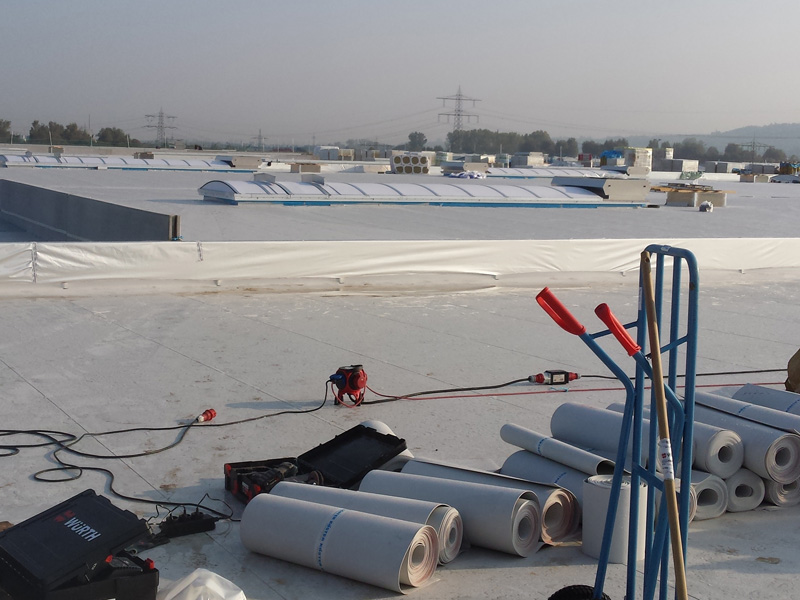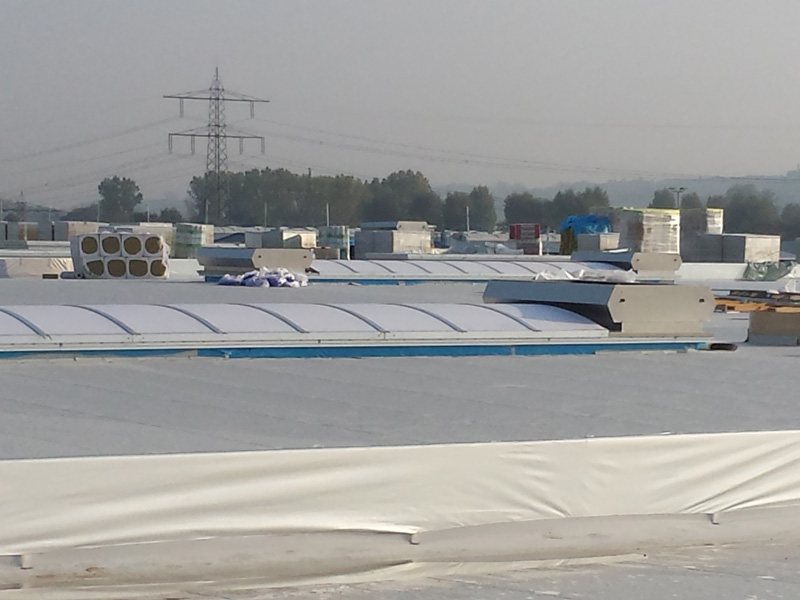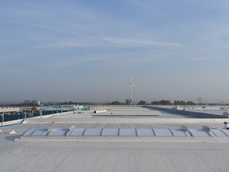 Dachabdichtung mit TPO-Dachbahnen, Neubau Produktionshall, Herbolzheim, Deutschland