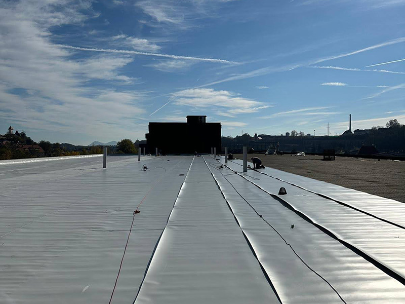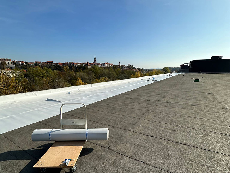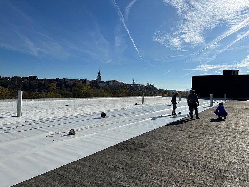 The flat roof of Kolodvor office building had been re-coated with KÖSTER TPO Pro 1.8 roofing membranes. It went directly over old bituminous surface that was deteriorated and even leaking in some places.