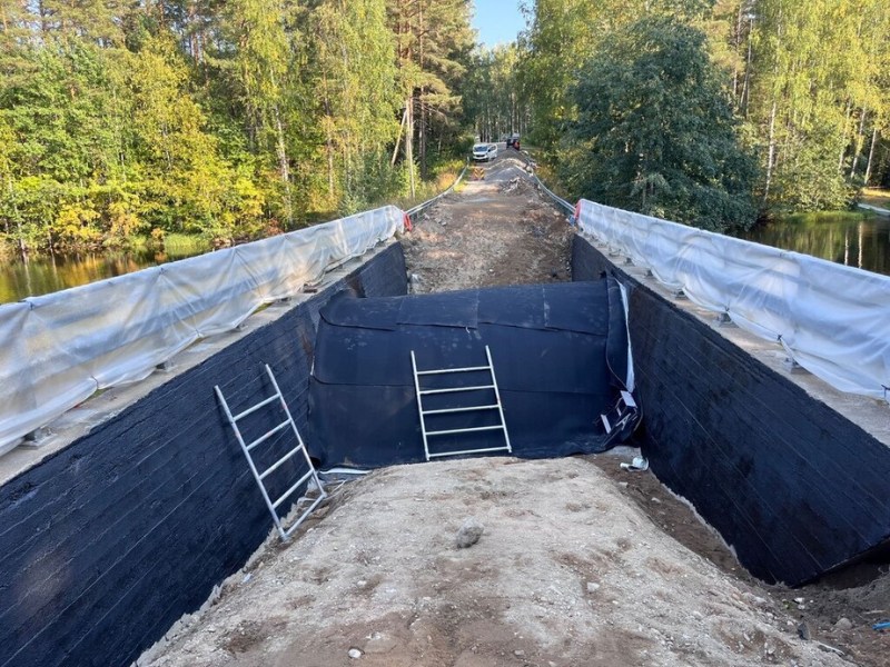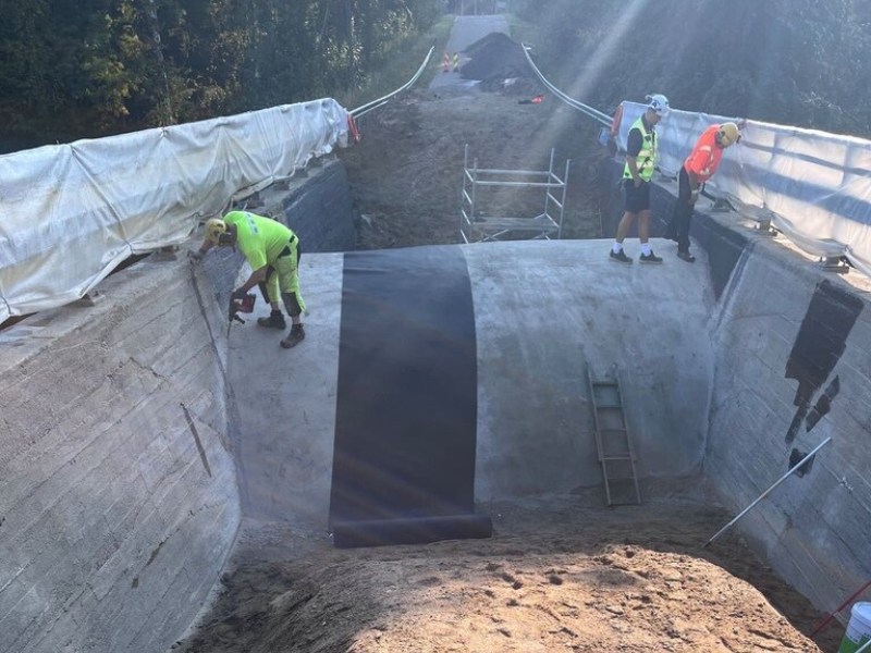 - The KÖSTER TPO 2.0 insulation mat was initially installed 1.5m wide along the length of the bridge on both sides of the sloping vertical surface of the edge beam, bonded with KÖSTER Adhesive over a width of approx. 120mm