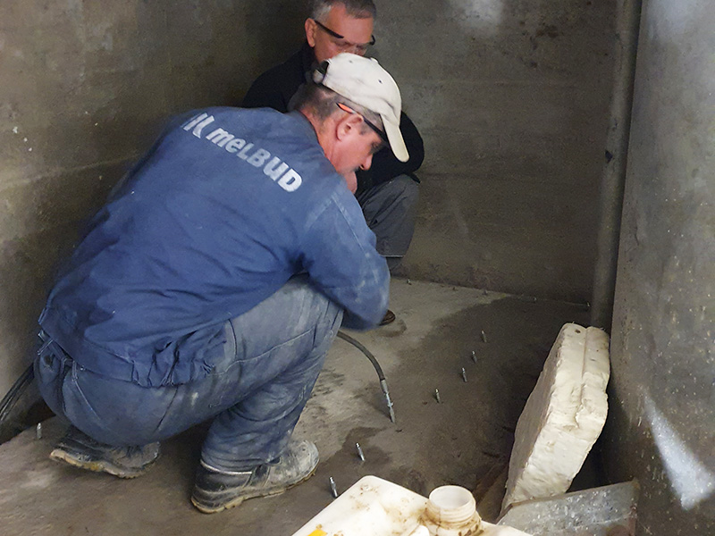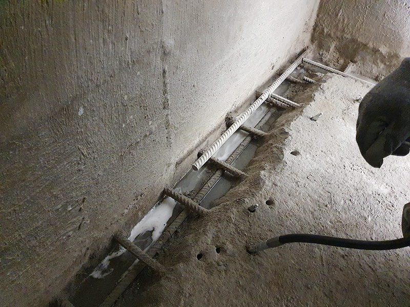 Waterproofing of the wall cracks in the inspection pit. Crack injection.
